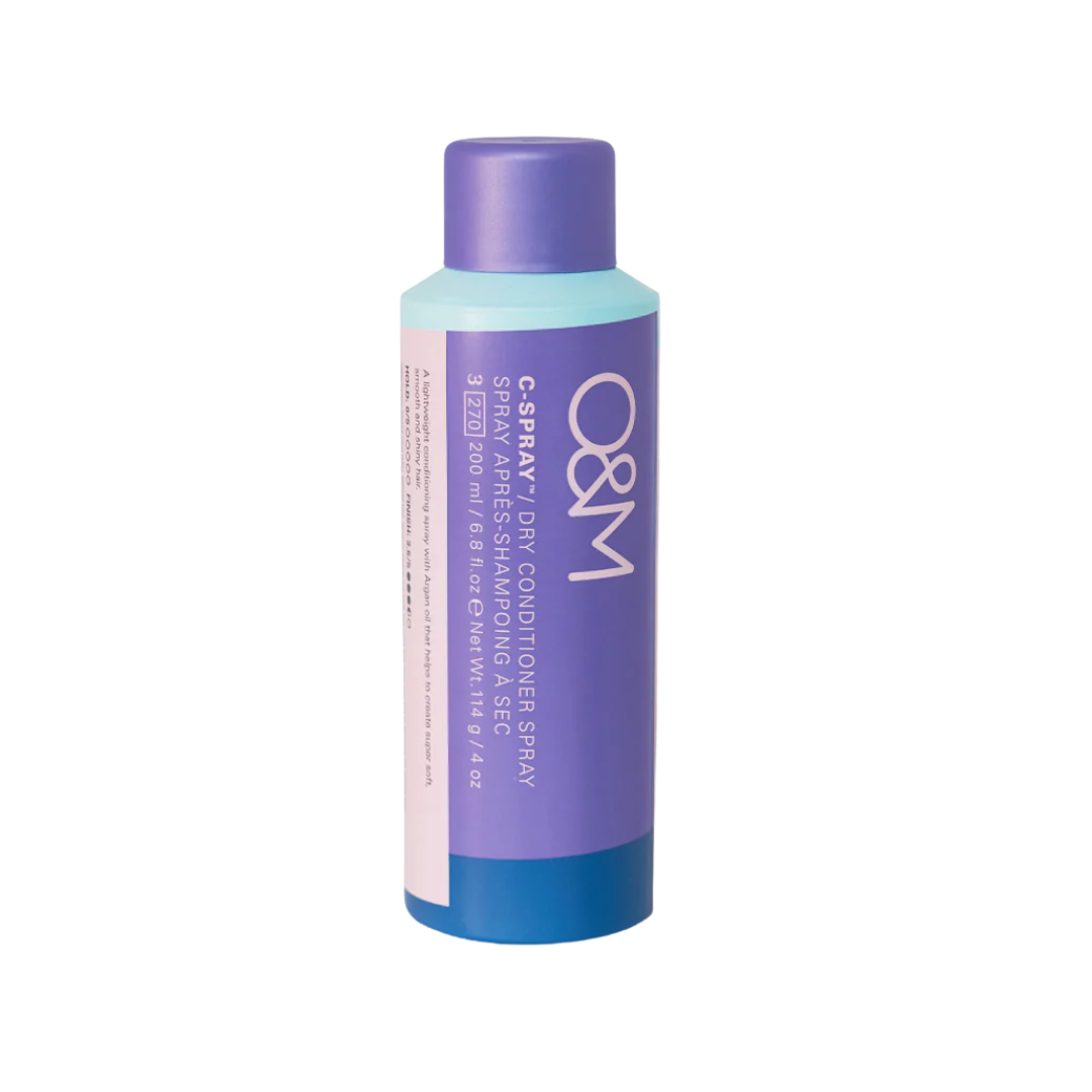 Shake well before use. Spray O&M C-Spray Dry Conditioner evenly through dry hair from mid-lengths to ends. Comb or brush through to distribute, then style as desired. Perfect for refreshing second-day hair or adding softness and shine on the go.