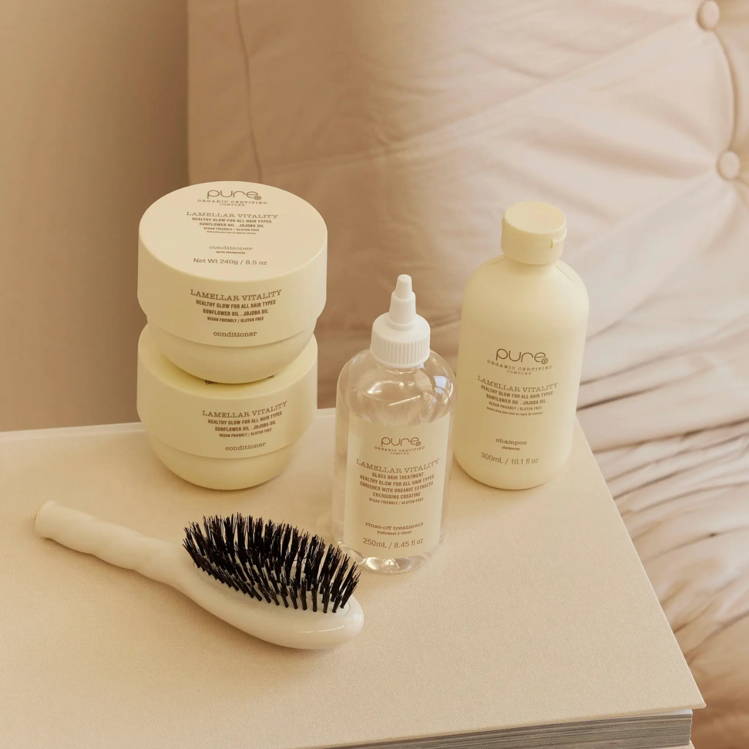 Wet your hair thoroughly with warm water to prepare it for cleansing. Apply a generous amount of Pure Lamellar Vitality Shampoo to your scalp and hair. Gently massage the shampoo into your scalp using your fingertips, working it into a rich lather. Rinse your hair thoroughly with warm water to remove all traces of shampoo. For best results, follow with your favourite conditioner or hair treatment.